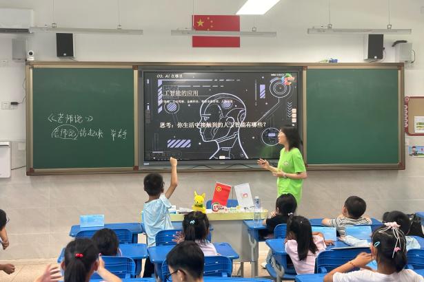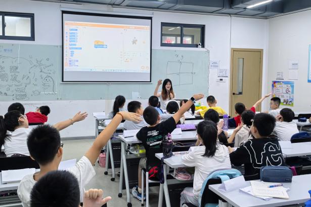 学院150余名学生前往全国20个省份开设爱心学校或进驻当地爱心暑托班,配送计算机与人工智能STEM教育课程,累计服务460余名少年儿童。宝山区“科创人才子女主题班”项目以“科技+教育”为特色,覆盖全区12个街道和2个特色点位,共开设82个班级,为双职工家庭提供暑期托管与科创启蒙的双重服务,学院2022级计算机科学与技术(师范)专业本科生担任志愿者负责人。项目通过标准化管理和个性化课程设计,针对不同社区需求,设计科创、艺术、非遗、红色等特色模块,并融入科技企业参访、专家互动等实践环节。学院学生全程跟进,在解决看护难题的同时激发青少年的科学兴趣。“智启未来”爱心学校的同学把AI助研实践转化成趣味知识小课堂,引导孩子们模拟数据训练、指令优化。“心连心”爱心学校开设了7节以人工智能+开源硬件为核心的前沿科技特色课程,涵盖原理讲解、DeepSeek应用、硬件控制与AI生成代码,培养学员科技思维与编程能力。