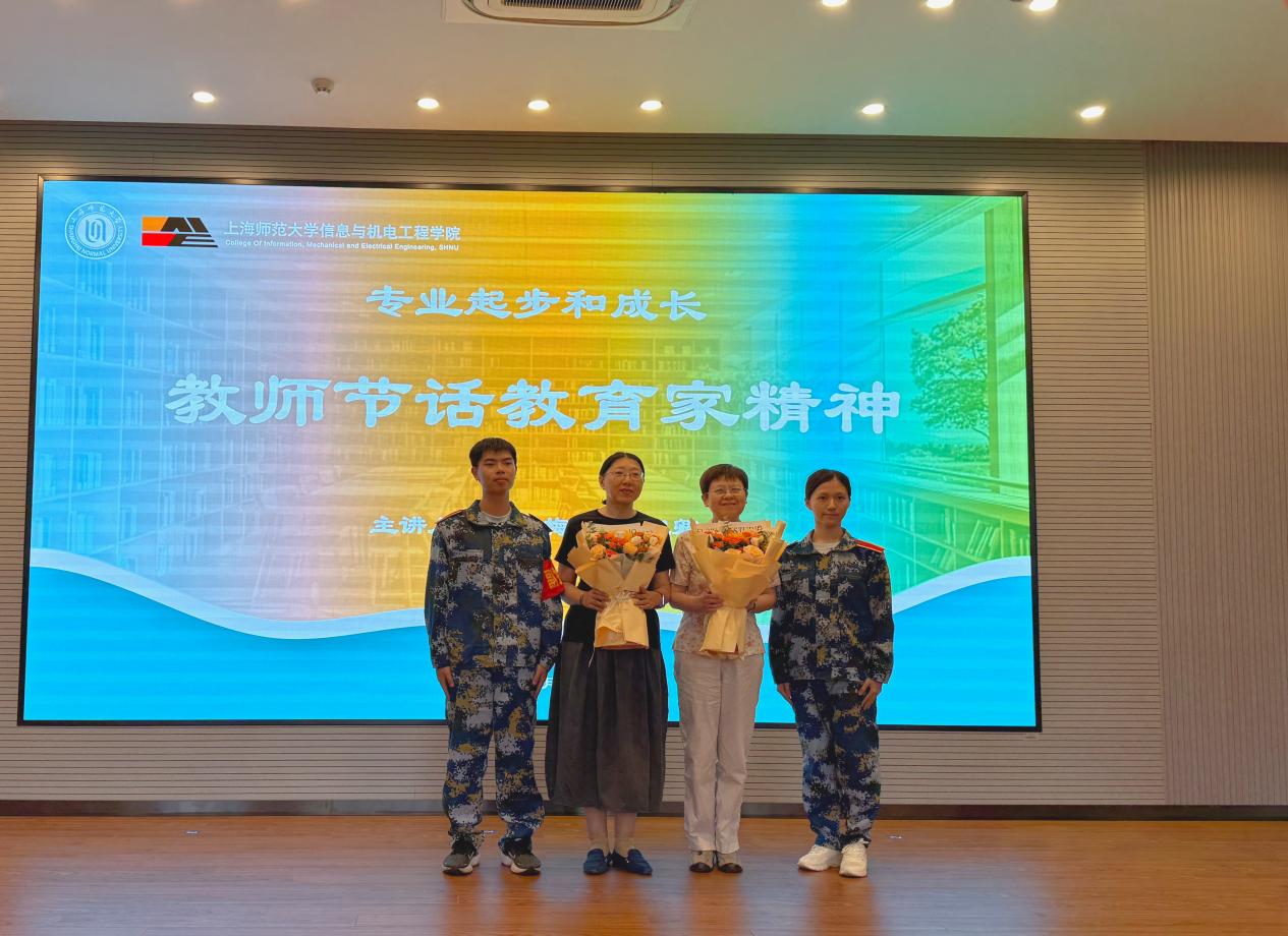 在第41个教师节来临之际,为帮助师范专业新生坚定教育理想、明确职业发展方向,9月10日下午,上海师范大学信机学院精心策划组织了“专业起步和成长——教师节话教育家精神”主题活动。活动特别邀请学院首届计算机师范专业毕业生、嘉定区教育学院退休教师俞咏梅,以及学院计算机科学与技术系王旭卿副教授担任主讲嘉宾。学院党委副书记、副院长何佳,学工办主任林峰,学院团委副书记王梓桐出席活动,100多名2025级计算机科学与技术(师范)专业新生现场参与。活动由2025级军训二团十三连正指导员张淋皓主持。