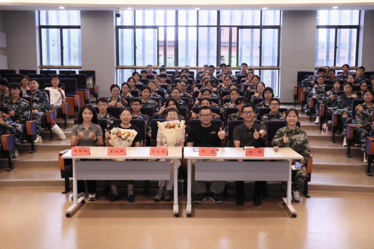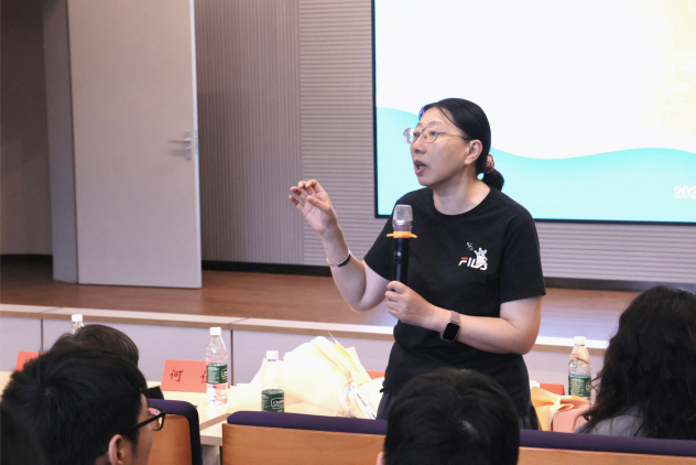 分享结束后,两位老师与新生们展开了热烈的互动交流。“老师,大学期间除了专业课,还应该培养哪些能力?”“面对就业和考研的选择,我们该如何规划?”面对新生的困惑,俞咏梅老师建议新生们首先要打好专业知识基础,随着学习的深入和对行业的了解,未来的发展方向自然会逐渐清晰。王旭卿副教授鼓励大家多尝试不同的实践机会,在实践中积累经验、不断反思,通过试错与总结找到最适合自己的成长路径。交流尾声,两位学生代表全体新生向老师们献上鲜花并致以节日的真挚祝福,现场洋溢着温馨与感动的氛围。