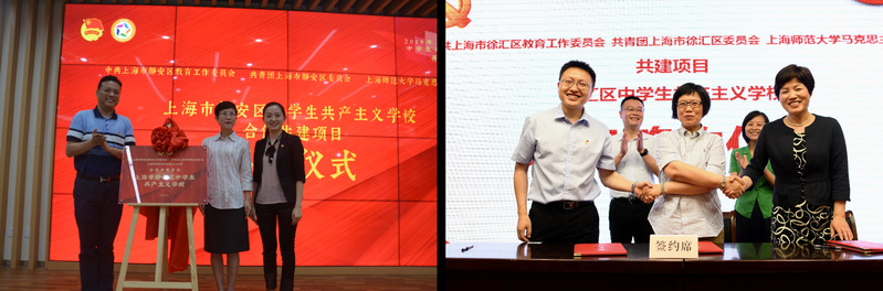 2019年6月,马克思主义学院立足学科优势,结合专业特点,先后与静安区、徐汇区教育党工委、团区委就共建中学生共产主义学校进行了反复商议,就多方面合作事宜签订了协议。截止目前,马克思主义学院多名全国优秀教师、中青年教师面向与静安区、徐汇区高中生开设专题讲座,多名优秀大学生担任班主任带领高中生赴全国贫困县云南红河开展“行走的课堂。同时,马克思主义学院积极整合校内资源,邀请中学生共产主义学校带教老师旁听《习近平新时代中国特色社会主义思想概论》课;组织高中生走进“形势政策课”体验大学课程,参观校史馆等活动。