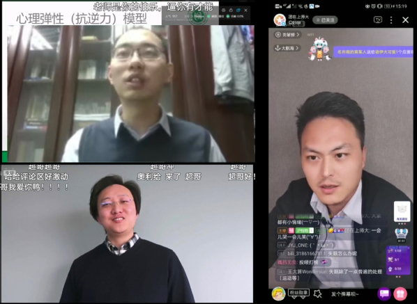 “在直播间的同学们请扣1”B站资深玩家、校心理咨询与发展中心专职咨询师乐嘉立老师与同学们全程互动,做学生的情绪垃圾桶,为大家排忧解难。