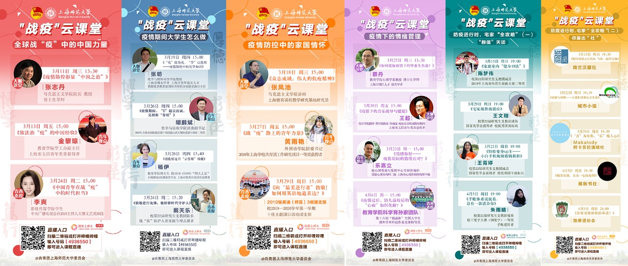 系列“战疫”云团课旨在深入学习贯彻习近平总书记关于疫情防控的重要指示精神,讲好中国抗疫故事,上海师大抗疫故事,进一步激发全校团员青年的责任担当,坚定在以习近平同志为核心的党中央坚强领导下打赢这场疫情防控人民战争的信心和决心,战斗尚未结束,英雄故事还在续写。师大青年,时刻准备着。