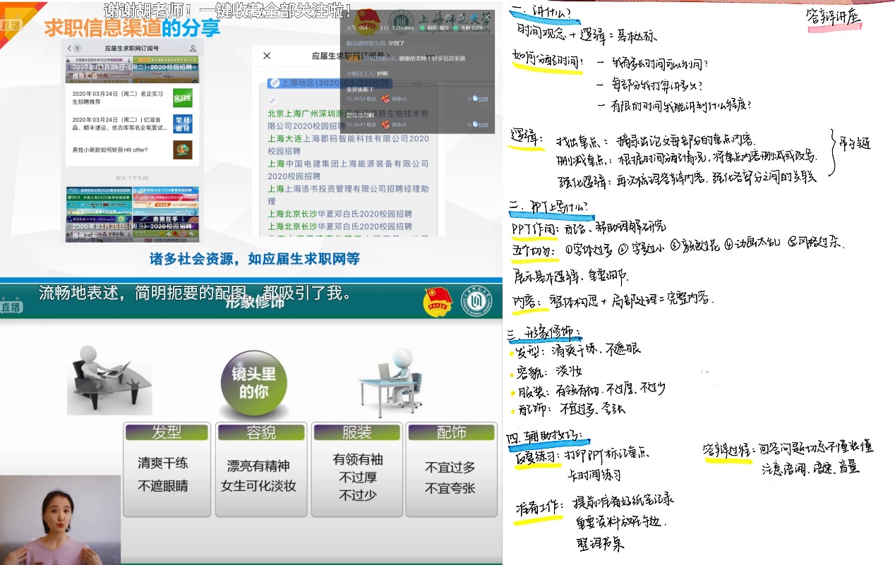 哲学与法政学院团委副书记胡鹏斌老师向应届毕业生传授云面试经验,面对面、键对键教会大家见招拆“春招”,俨然一本新鲜出炉的云求职攻略。教育学院博士生杨伊结合自身研学经历,从“答辩怎么讲?”“答辩PPT怎么做”“个人形象修饰”“辅助技巧”四个方面给出建议。