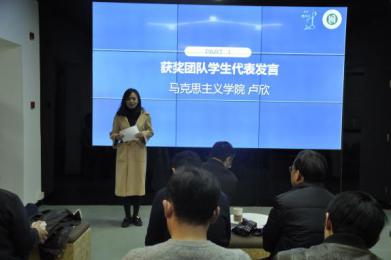 在项目团队交流环节中,来自马克思主义学院的研究生代表卢欣讲述了自己做《农村义务教育中德育课程的实施现状及对策研究——以四省(市)五市为例》项目的初衷及一路走来的心路历程。虽然科研的道路总有艰难,但正因为每一步都走得扎实才有了最后丰硕的成果,其言谈中流露出的真情实感深深感染了在座师生。来自数理学院的本科生代表赵炎亮的《一种新型仿生光学防伪标识》项目从雏形到结项历时两年多,改稿十几次,是学院的大力领导、指导教师的辛勤付出、团队成员的精诚团结才让这个项目最终走进挑战杯决赛并收获精彩。