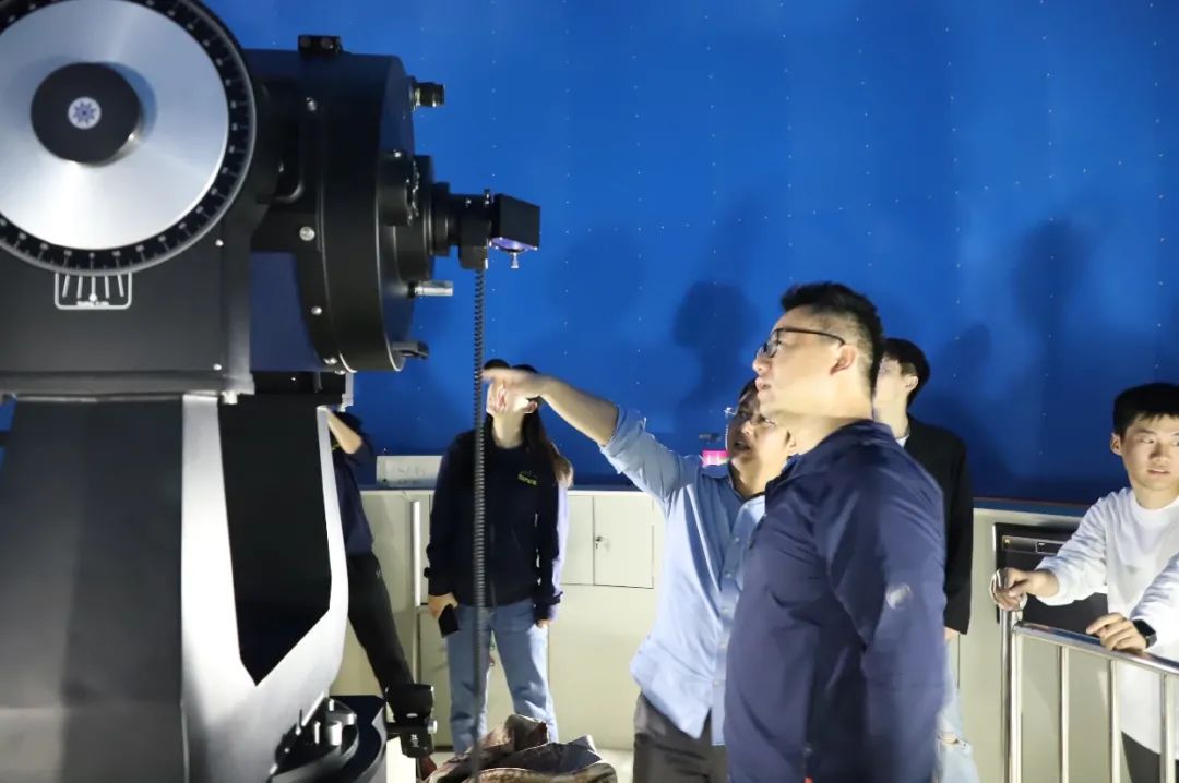 跟随陈老师的步伐,参观杨浦区的青少年科技站,走进天文教室,迎面而来的便是中国古代星象图,三垣二十八宿赫然在目,其下有很多我国古代的天象模型,非常特别的是这些模型都是上手操作的,实打实的感受古代天文观测的过程,望远镜的种类也是应有尽有,小至罕见的日珥镜,大到20英寸的屋顶望远镜,其他也有很多有趣的教具设备,例如AR沙盘、地质地貌模型、星象仪等,让大家眼前一亮。