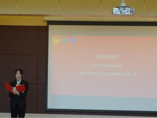 在雄壮的《国际歌》中,化学与材料科学学院第七次学生代表大会圆满闭幕。