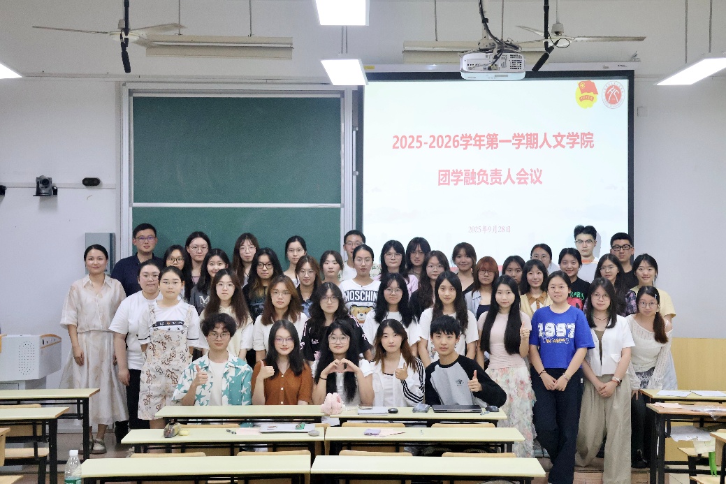 2025年9月28日晚,上海师范大学人文学院团学融全体负责人大会于奉贤校区五教A107举行。人文学院团委书记陈若千,人文学院团委副书记荆鸣昊,人文学院团委部门、学生会、融媒体中心全体负责人参会。会议由陈若千老师主持。