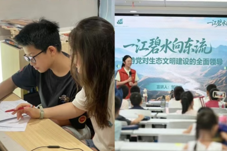 爱心服务点亮城乡课堂,环地学子在育人征程中书写青春担当。敦煌南街小学,实践团队开展感官识地、生态课程,融家乡热爱于指尖;上海桃浦社区“绿芽爱心学校”,在“探秘国际港口”的趣味课堂中埋环保种子;徐汇康健街道暑托班,志愿者化身“小老师”,辅导作业、组织游戏,倾听孩子心声;更有团队带领孩子“闻香辨地域、触摸知地貌”,用创新打开认知大门。