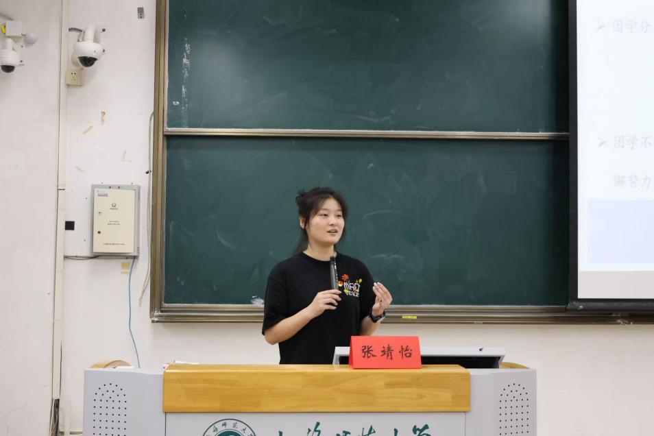 哲学与法政学院分团委(学生)副书记张婧怡以“在责任中成长,在服务中蜕变”为题开展了朋辈分享。她指出团委和学生会是党联系青年学生的桥梁和纽带,既要“接天线”,又要“接地气”,要牢记服务宗旨,想同学之所想, 急同学之所急, 解同学之所难。在未来的团学工作中,慢慢感受,认真学习,多思多问,在团学组织大舞台上展现青春风采与责任担当。