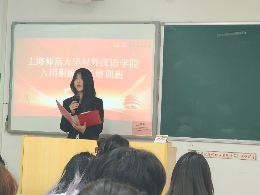 为加强青年思想引领,筑牢团员发展根基,10月24日,上海师范大学对外汉语学院2025-2026学年第一学期入团积极分子培训班在奉贤第五教学楼A座106室隆重举行。本次培训通过团章领学、榜样分享等多个环节,引导学员们深化对团组织的认识,明确青春奋斗的方向。现场学习氛围浓厚,学员们展现出了极高的热情与昂扬的斗志。