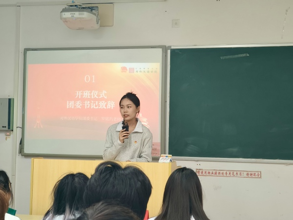 对外汉语学院团委书记,2023级、2024级本科生辅导员罗铭玙老师首先作开班动员讲话,她对全体学员表示热烈欢迎,并充分肯定了大家追求进步、向团组织靠拢的积极性。