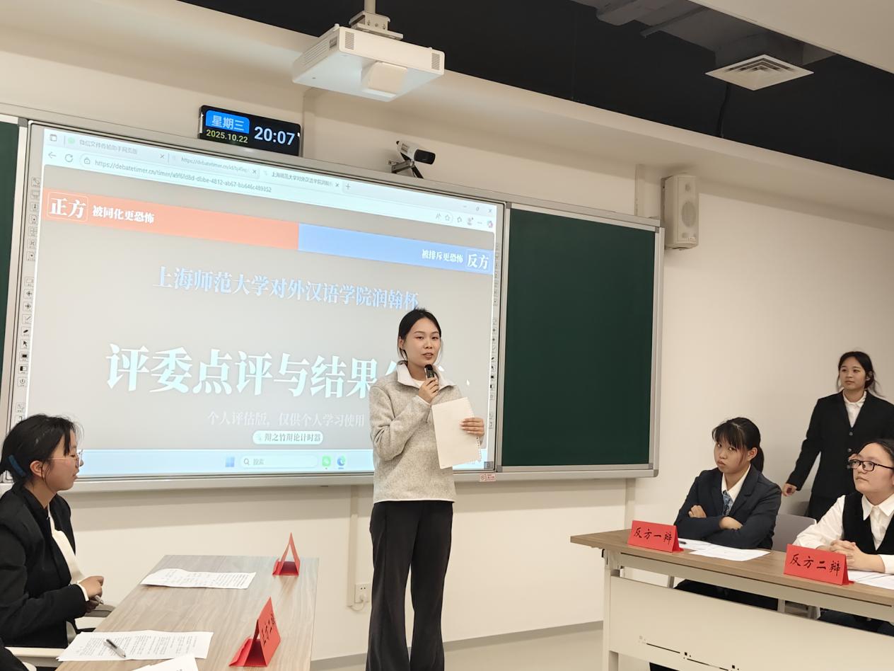为培养同学们的辩证思维能力,提高外汉学子的团队协作意识,对外汉语学院分别于2025年9月28日、10月13日和10月22日在上海师范大学奉贤校区第四教学楼A座103教室、第五教学楼A座106教室和大学生发展中心B座301教室举办了第四届“润翰杯”辩论赛的初赛和决赛。