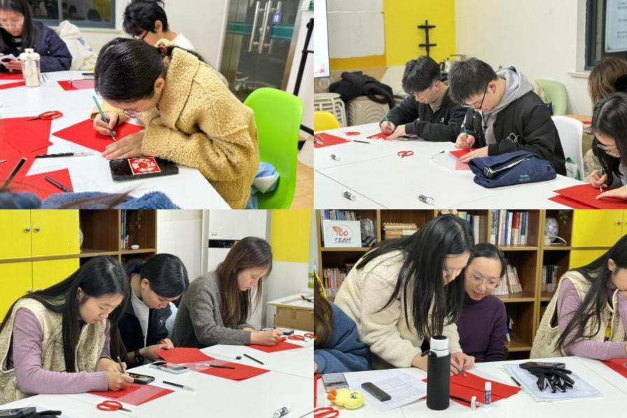 为深化“一站式”学生社区育人实效,落实“五育并举”理念,拓展劳动教育实施途径,学院于11月27日在奉贤校区33号楼一楼活动室顺利举办“语”见非遗工坊第一期——非遗剪纸体验活动。本次活动吸引20余名学生参与,同学们在剪刀与纸张的交织中感受非遗魅力,在外语与技艺的融合中传承文化根脉。