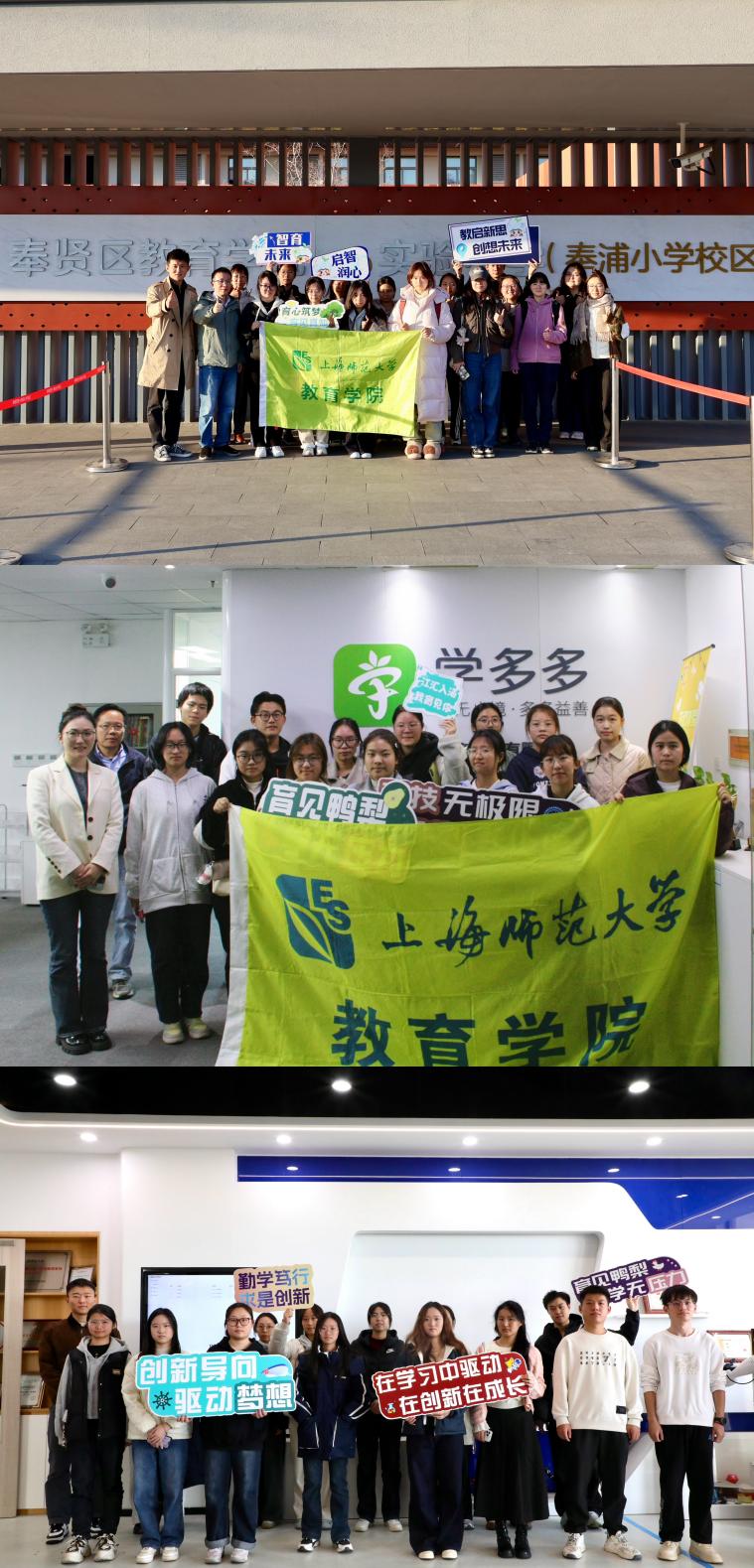 为探寻前沿科创教育实践样态,激发师范生创新思维,11月26日下午,教育学院“教创未来”教苑科创营师生代表赴上海市奉贤区教育学院附属实验小学、学多多教育科技有限公司、上海师范大学信息与机电学院具身智能实验室开展实地研学,开展了一场融教育实践、智能科技与产业应用于一体的深度研学之旅。活动由辅导员刘怡轩、陈圆强、迪丽热巴带队前往。