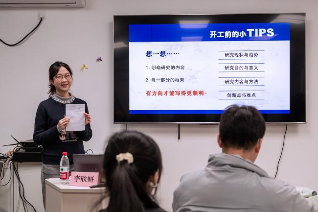 讲座开篇,李欣妍同学强调,撰写申报书前需先理清整体框架,找准发力方向。申报书的核心由四大模块构成,分别是研究现状与趋势、研究目的与意义、研究内容与方法、创新点与难点。这四大模块环环相扣,共同支撑起整个申报项目的逻辑体系,只有先明确各部分的定位与关联,才能让撰写过程事半功倍。