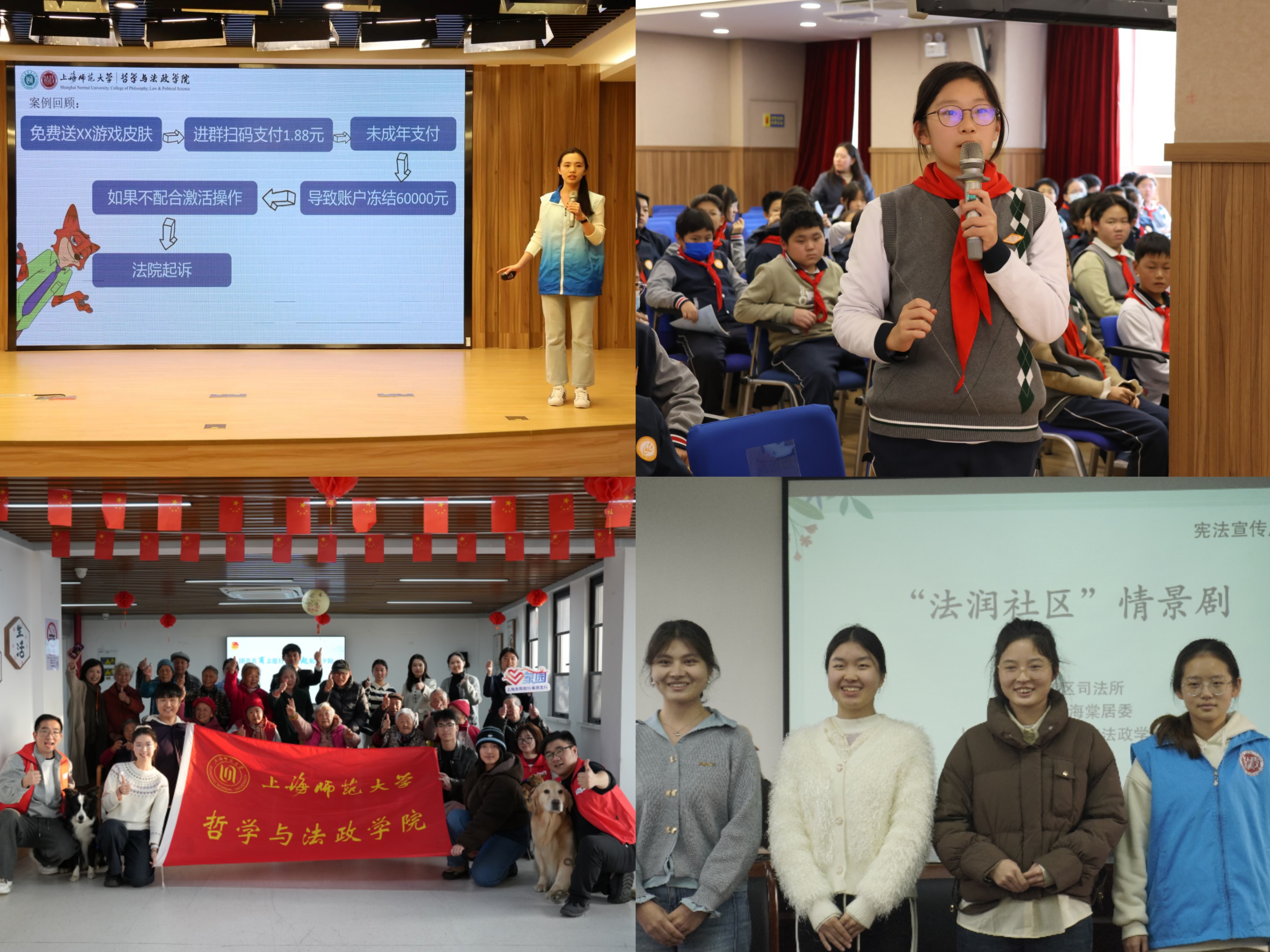 面向校外群体,宣讲团队精准对接不同年龄层需求。走进上海师范大学附属奉贤实验小学时,围绕“科学立法、严格执法、公正司法、全民守法”核心,通过真实案例拆解与趣味解读,为未成年人梳理法律发展脉络,筑牢法治防护网。走进中国中学时,以“沉浸式反诈课堂”为载体,通过“案例拆解+情景模拟+口诀速记”形式,剖析“刷单返利”“免费游戏皮肤”“校园贷”等校园高频骗局,结合“反诈知识大闯关”强化“四不”防诈原则,呼吁学生成为“家庭反诈宣传员”。走进海湾旅游区滩浒村便民服务站、五宅村养老社区时,联合司法所、居委会,通过普法情景剧《这点小事可不小》将生硬的法律条文转化为居民们看得懂、听得进的生活故事,重点讲解宪法中老年人权益保障相关内容,用贴近生活的语言让基层群众读懂宪法价值。