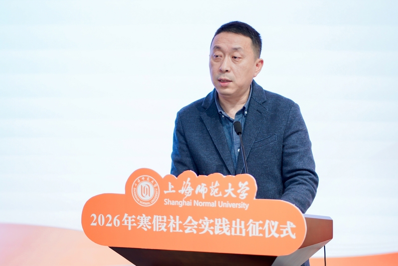朱惠军为2026年寒假社会实践团队授旗并作动员讲话。他在讲话中强调要在心怀“国之大者”中坚定政治自觉,坚持不懈用习近平新时代中国特色社会主义思想铸魂育人;在体察世情国情中增强思想自觉,主动融入和服务上海“五个中心”建设;在投身中国式现代化新征程中激发行动自觉,推动社会实践活动内涵化、规范化、常态化、长效化发展。他勉励师大青年心中有梦,眼里有光,脚下有路,在社会实践的广阔天地中锤炼过硬本领、涵养责任担当,共同迎接“十五五”更加壮阔的发展前景,奋力谱写中国式现代化建设的崭新篇章!