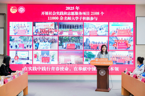 121日下午,上海师范大学2026年寒假社会实践出征仪式在徐汇校区举行。校党委副书记、副校长朱惠军,组织部、宣传部、学工部、研工部、团委、教务处等职能部门负责人,以及各学院学生工作副书记、负责人、团委书记、教师及学生代表参加本次活动。