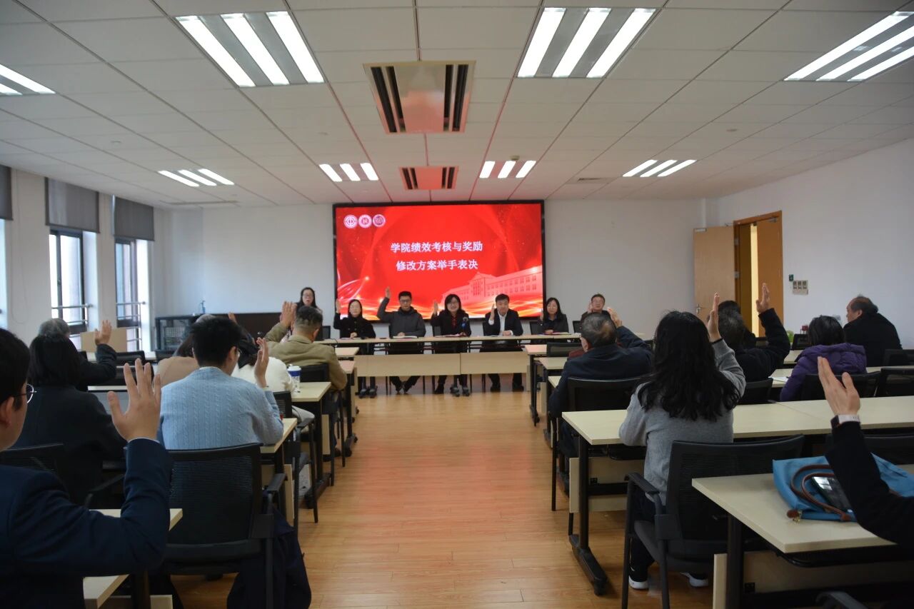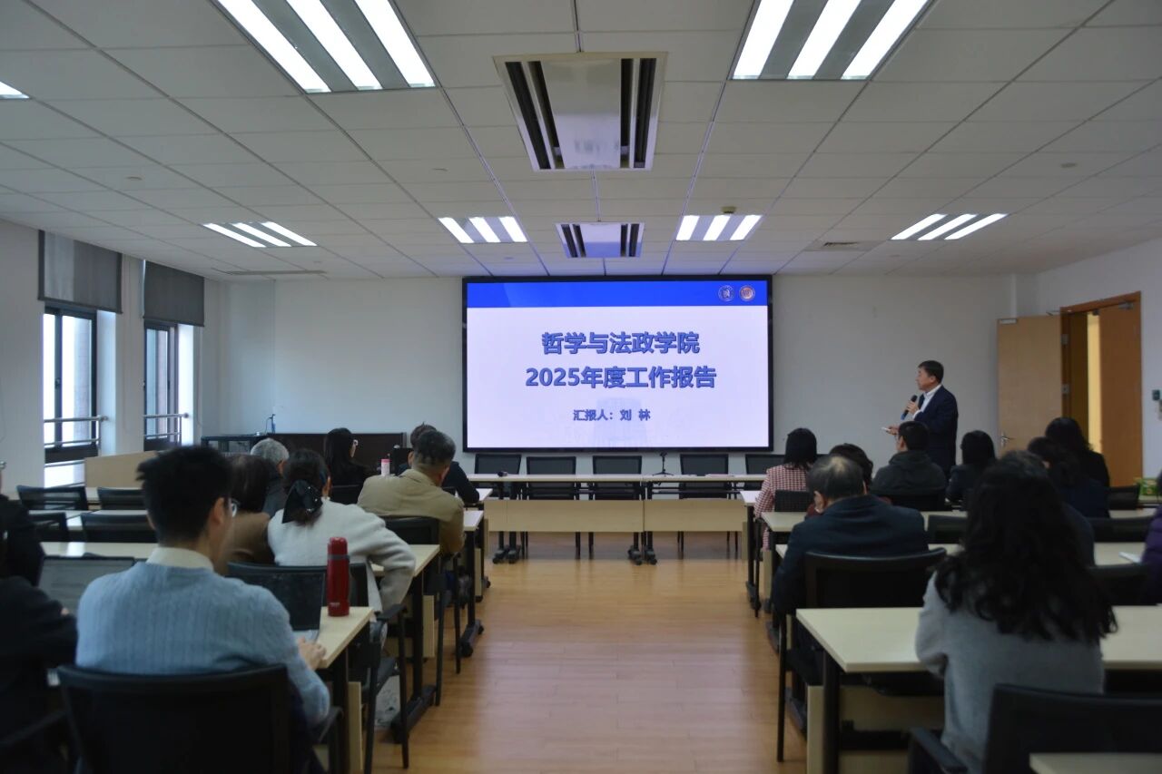 大会在庄严的国歌声中开幕。本次教代会共有六项议程:一是听取院长刘林作《2025年度学院工作报告》,刘林系统回顾了过去一年学院在学科建设、人才培养、科学研究、社会服务等方面取得的进展与成效。二是听取分管行政工作副院长张振洋所作的《2025年度学院财务工作报告》,张振洋向代表们通报了学院经费收支情况,增强了财务管理的透明度。三是代表们讨论并审议《哲学与法政学院工作量津贴及绩效奖励调整方案(2025)》。会议对方案中“量入为出、保障民生”原则的具体表述进行了说明,明确了相关文字修订情况。代表们围绕方案内容进行了认真审议和充分讨论。四是代表们对《学院绩效考核与奖励修改方案》进行举手表决。经表决,方案获得全票通过。五是听取肖薇关于往年提案落实及本次提案征集与初步处理情况的报告。报告显示,上届教代会多项提案已有效落实,包括校区办公环境改善、教学工作量优化、捐赠管理机制完善、教职工生病慰问制度补充等。本次教代会收到一项提案,涉及系科办公设备配置,学院已明确处理方向,将尽快推动落实。