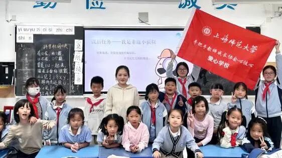 “手把手教师成长协会心彼心”爱心学校在上海市奉贤区海湾旅游区一居委的大力支持下,由31名来自各学院的师范生教员组成志愿团队,为80名辖区学生开展为期28天的线下线上结合公益教学服务,在实践中传递温暖,在陪伴中共促成长。