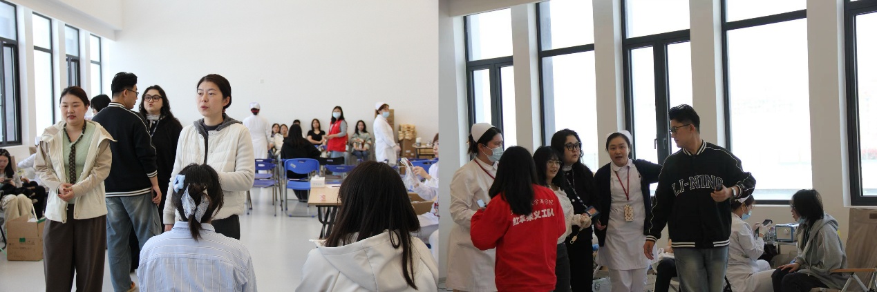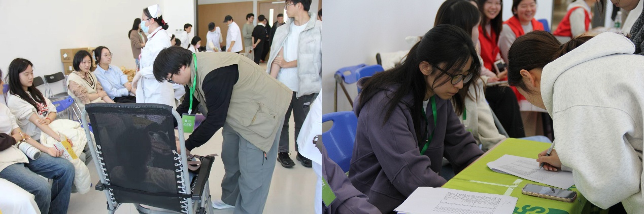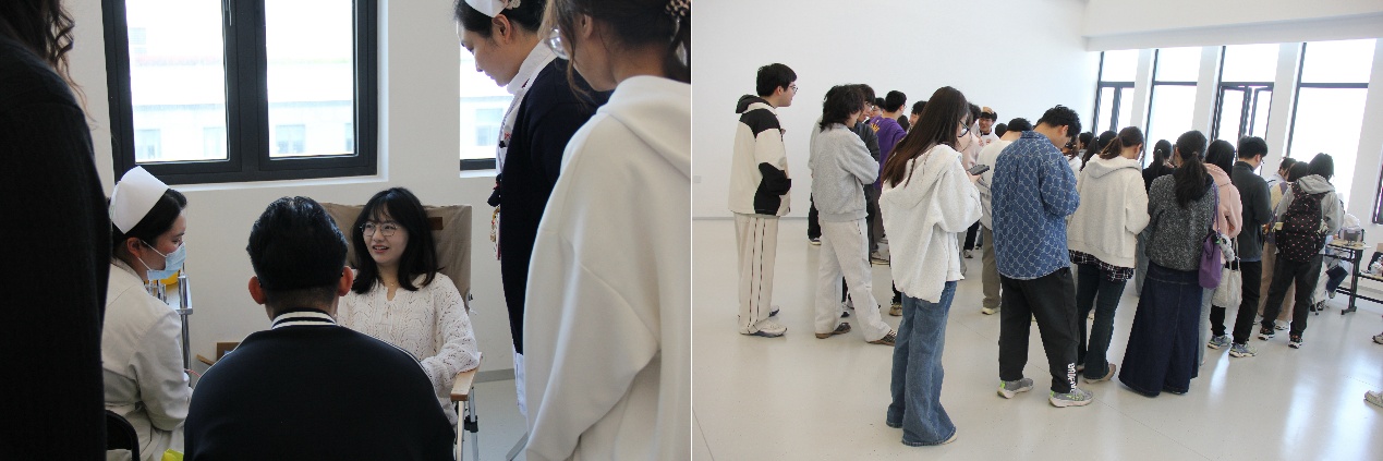 我院领导和老师们全程陪伴在侧,细致关怀每一位献血同学的身体状态,耐心解答疑问、贴心提供帮助,用温暖的陪伴为同学们筑牢安心后盾,让奉献之路满是温情。
